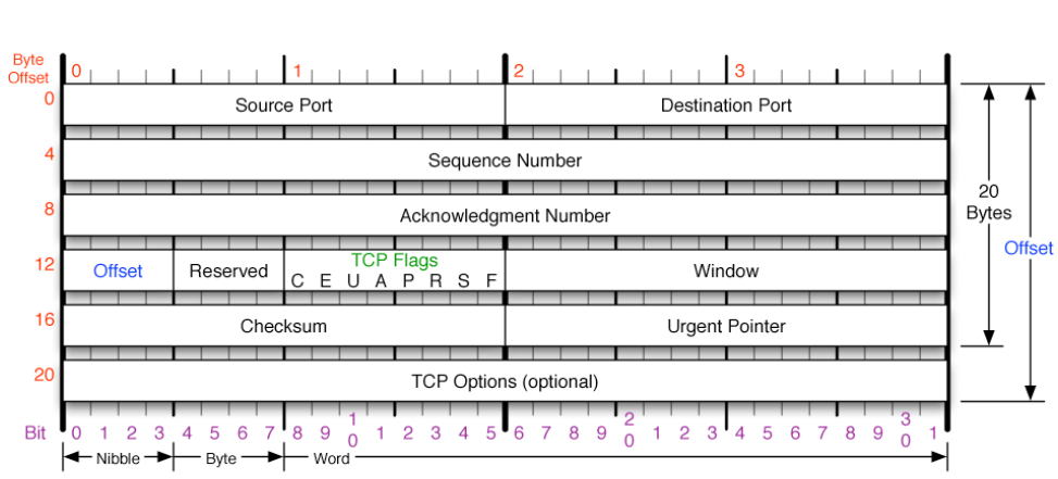 - Offset: TCP Header의 크기 (기본 20byte)