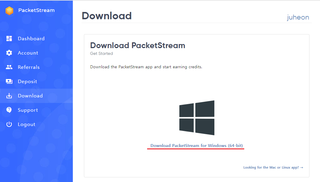 설치의 경우에는 위 packetstream 홈페이지를 통해서 가능합니다!