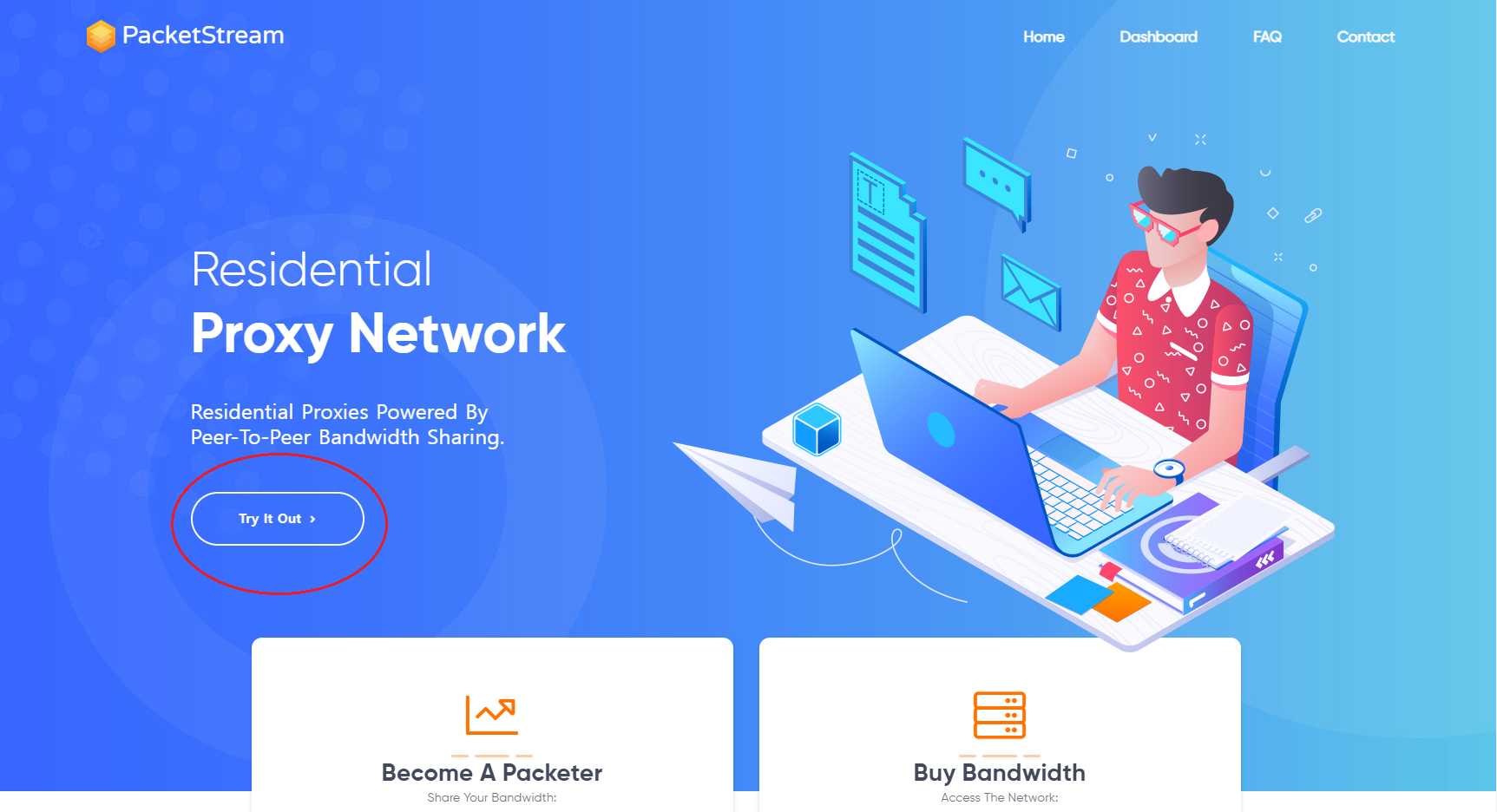 1.packetstream 홈페이지 접속 후 Try it out 클릭하기