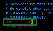 JENKINS_USER를 찾아(/JENKINS_USER) 원하는 계정으로 수정합니다. 저는 ec2-user로 수정했습니다.