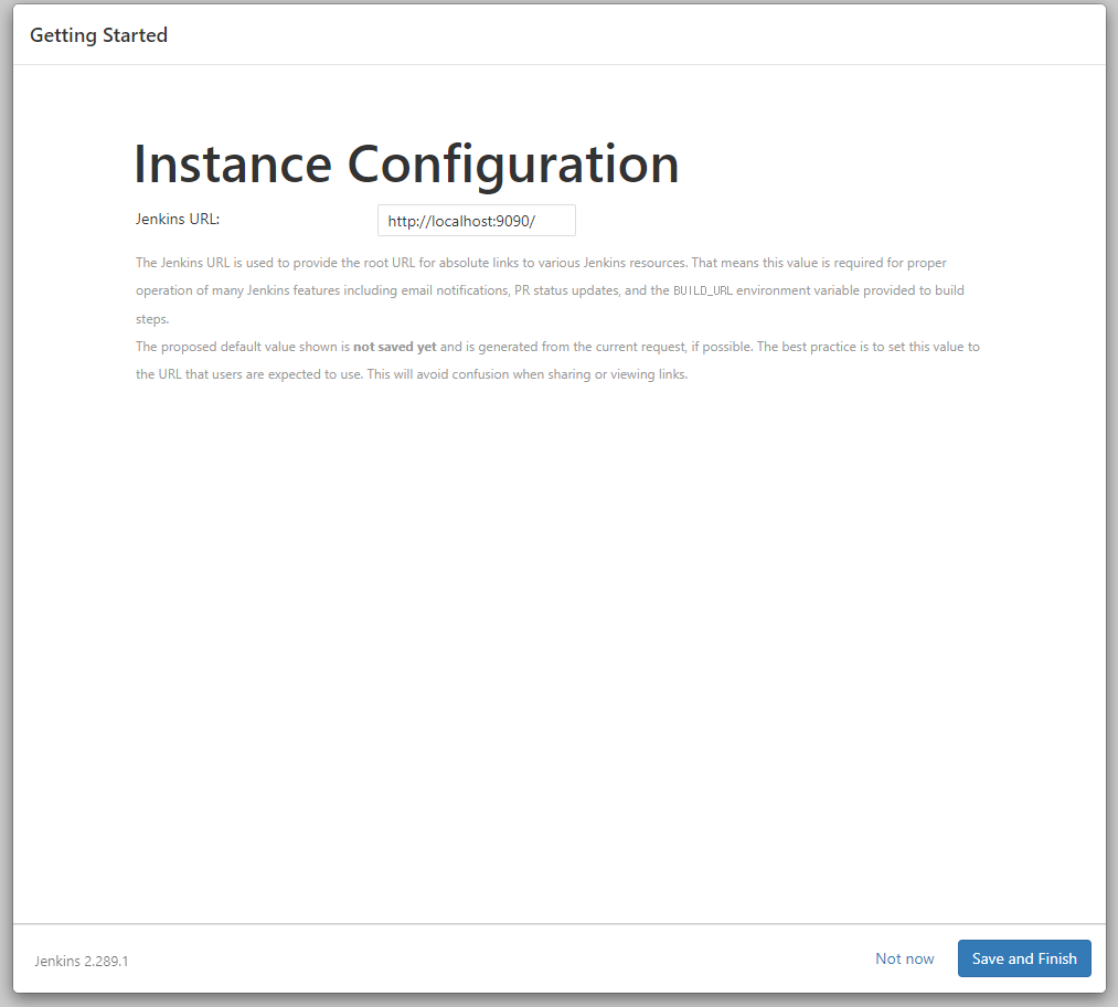 젠킨스의 URL 설정인거 같은데, 그냥 Save and Finish 하자.