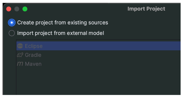 Create project from existing sources 선택