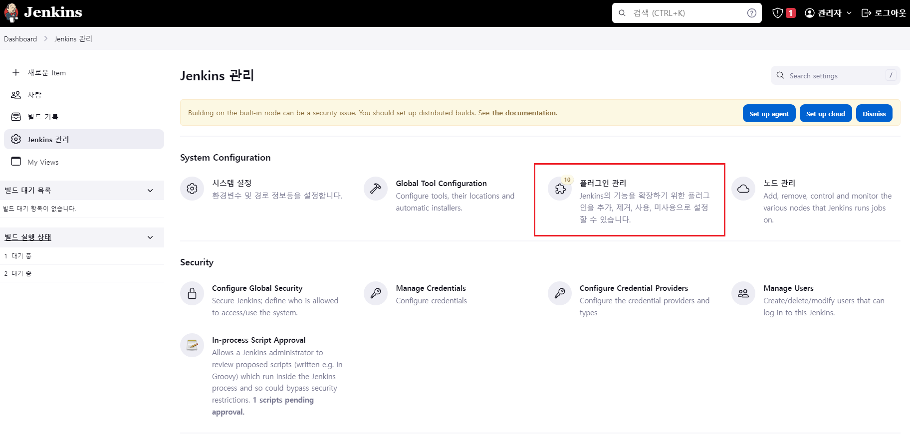Jenkins 관리 -> 플러그인 관리