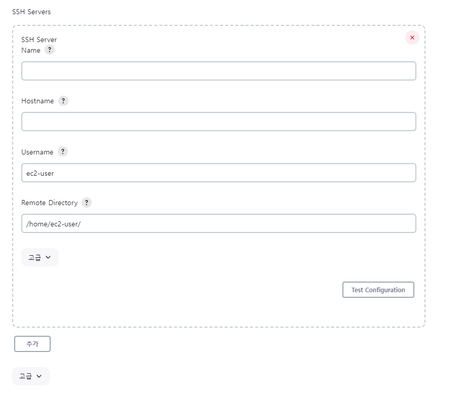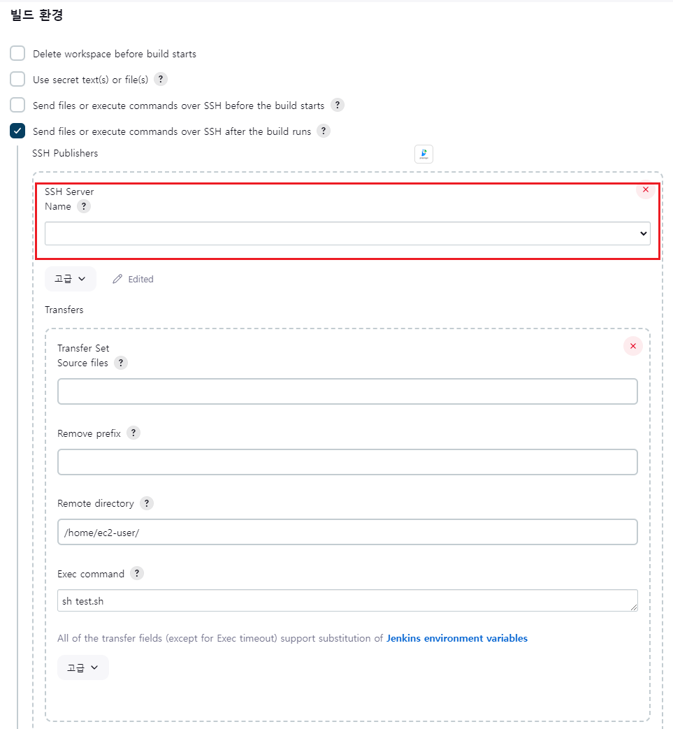 ✔️ 빌드 환경 : Send files or execute commands over SSH after the build runs