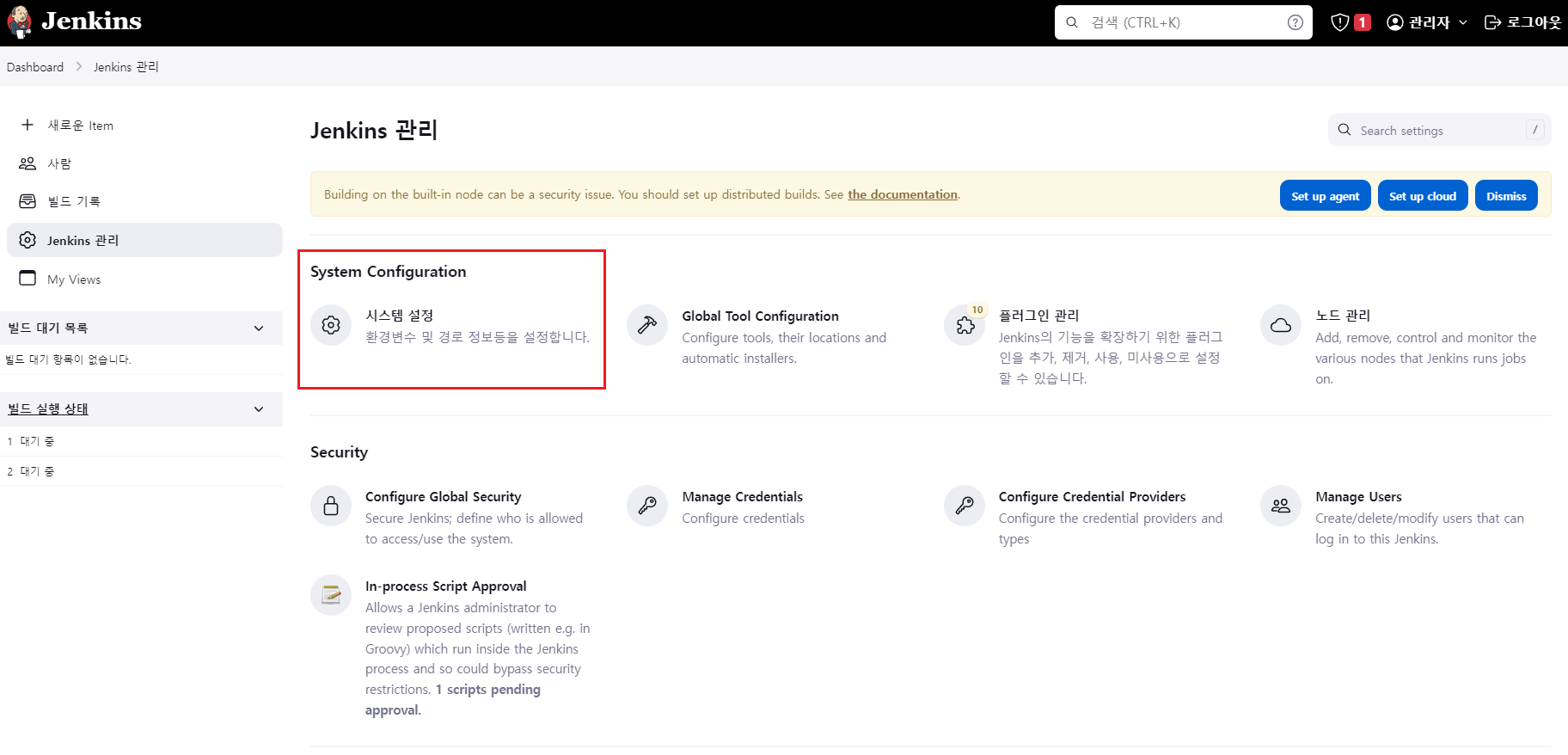 • Jenkins 관리 -> 시스템 설정