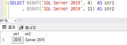 SELECT RIGHT('SQL Server 2019', 4) AS str1