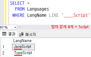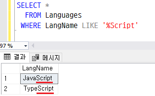 WHERE LangName LIKE '%Script'