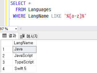 WHERE LangName COLLATE Korean_Wansung_CS_AS LIKE 'Java%'