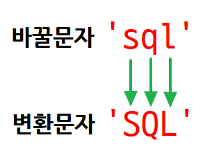 바꿀문자와 변환문자의 길이는 동일해야한다.