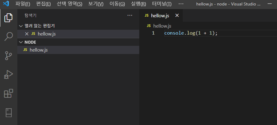 node hellow.js 실행