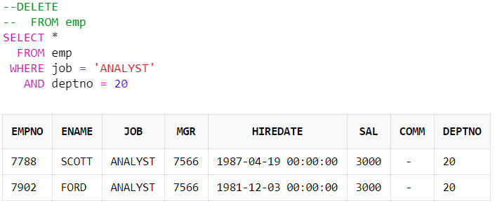 WHERE job = 'ANALYST'